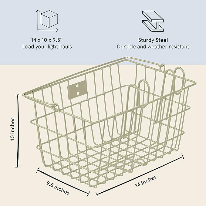 - Please note: while this basket fits most standard bicycles, we recommend taking measurements before completing your order. Basket Dimensions: 14.5" x 9.5" x 7.5"