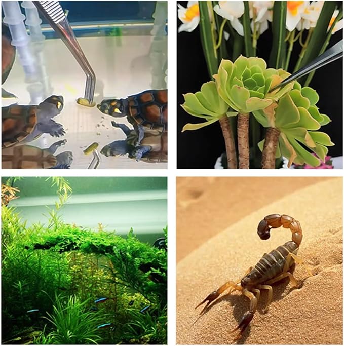 - Aquascaping tools, 3 in 1, a 9.8" curved scissor, a 10.6" curved and a 10.6" straight tweezer, and the long handles on these tools are more convenient than planting or trimming by hands.
