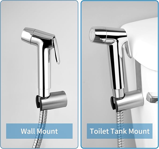 - Two Mount Methods: The bathroom faucet sprayer rinser has two ways of installation, you can hook sink hose sprayer holder to your toilet tank that save your bathroom space, or you can mount it on the wall to supply other multiple use according to your varies requirment, such as pet shower, car shower, flower sprayer, and baby shower