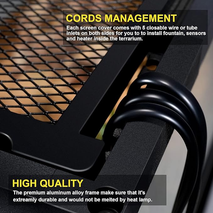 - - Flexibility:Equipped with two side glass or mesh attachment that helps you to make a decision based on the surroundings like : a glass attachment for higher humidity or the mesh attachment for the flowing air inside the habitat.