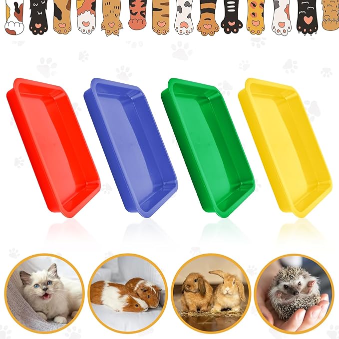 - VIBRANT COLOR ATTRACTION: The four-piece kitten litter boxes set comes in eye-catching colors designed to draw in kittens, making the transition to using a litter box easier. The 15x12x1.6-inch size is perfect for small pets like kittens and rabbits, and the multiple boxes are ideal for multi-pet households, aiding in the health monitoring of each pet's waste.