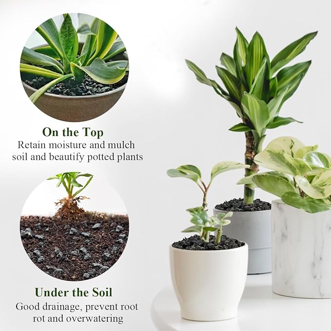 - 【Lava Rocks for Plants】Adding lava rocks mulch to maintain plants like orchids, succulents, cacti, and bonsai trees ensures proper drainage while maintaining moisture. It is not only aesthetically pleasing but also prevents weeds from growing