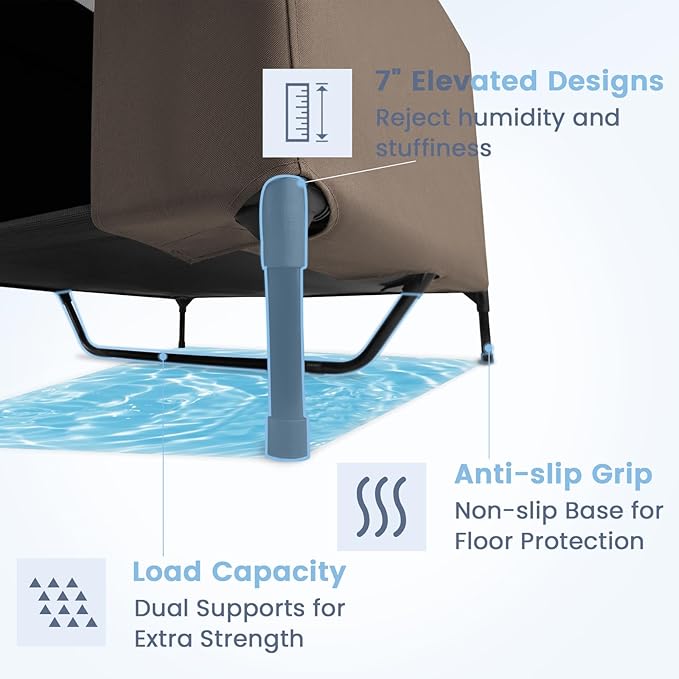 - Versatile 2-in-1 Dog House: Assembly is a breeze with no tools or screws needed – your pet will be lounging in luxury within minutes. When needed, effortlessly transform this weatherproof structure into a 2X1 Textilene elevated dog bed for easy maintenance and unparalleled comfort.
