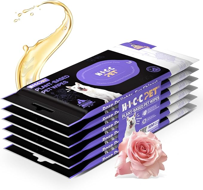 HICC PET Cleaning Deodorizing Wipes for Dogs & Cats, Vet Recommended Nourishes Smoothes Fur Pet Grooming Wipes with Fermented Coconut Oil, Hypoallergenic Plant-Based Dog Wipes for Paws and Butt