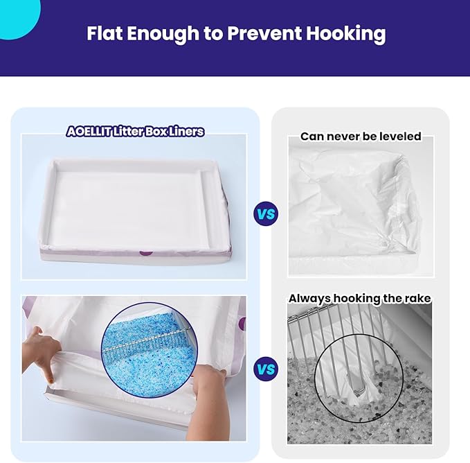 - SAVE MONEY & MESS: AOELLIT self cleaning litter box bags prevent urine leaks in disposable litter box, extending their lifespan, reducing cleaning frequency, and saving up to 95% on cat's fecal disposal costs. They also protect reusable trays, minimize scrubbing and scratches, control odors effectively, keep indoor air fresh, and make cleanup easier and hassle-free