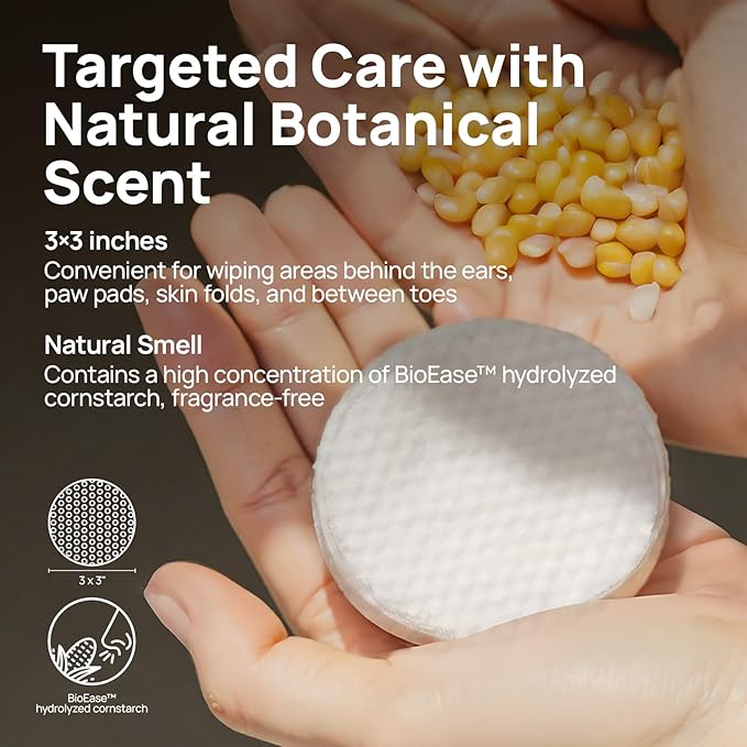 - More Powerful Formula for Root-Level Itch Relief: Itch relief for dogs contain a high concentration of BioEase hydrolyzed cornstarch, which penetrates deeply and offers natural anti-allergic properties for fast and long-lasting itch relief. It effectively inhibits the release of itch factors, addressing itching at its source. Due to its high concentration and absence of artificial fragrances, the wipes have a strong natural plant scent โ a true sign of the potency of natural ingredients