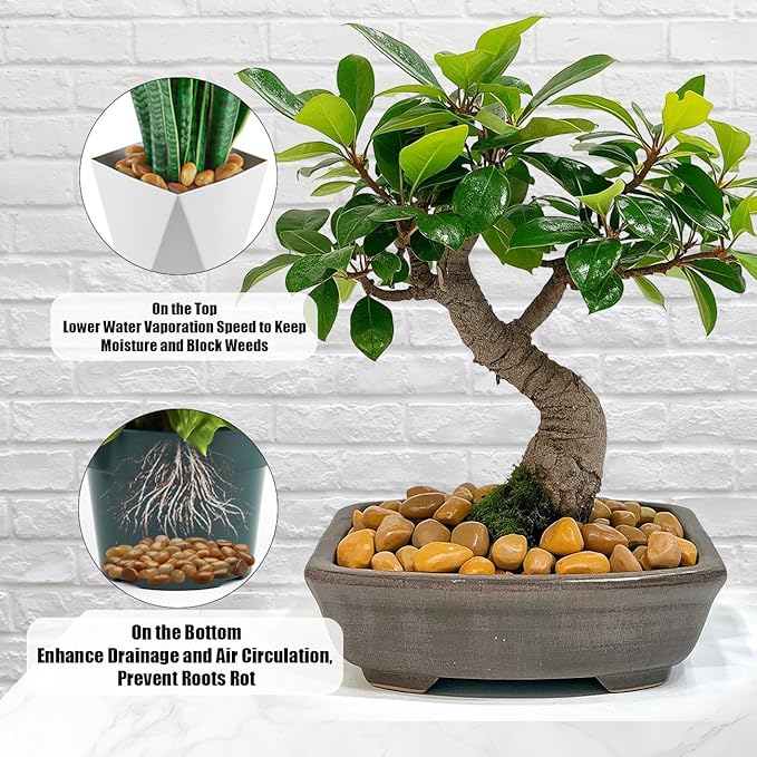 - Benefits For Plants: Pebble tray for plant humidity. These small pebbles for indoor plant keep soil moisture and protect soil from weeds, being dug up by house pets