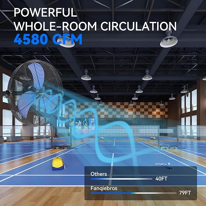 - ๐๐จ๐ฐ-๐๐จ๐ข๐ฌ๐ ๐๐๐ฌ๐ข๐ ๐ง - The heavy-duty wall fan operates at a high speed of 4580 CFM with a noise level of only 60dB, which is lower than the industry standard, creating a quieter gathering or working environment