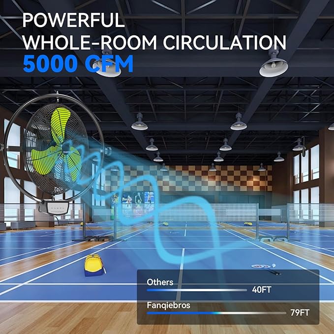 - ๐๐จ๐ฐ-๐๐จ๐ข๐ฌ๐ ๐๐๐ฌ๐ข๐ ๐ง - With optimized motor and vibration reduction technology. When running at a high speed of 5000 CFM, the noise level is only 59 dB, this wall fan is lower than the industry standard, creating a quieter gathering or working environment