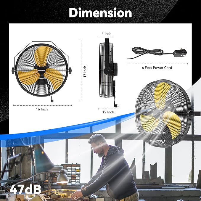 - ๐๐๐๐ฏ๐ฒ-๐๐ฎ๐ญ๐ฒ ๐๐ญ๐ซ๐ฎ๐๐ญ๐ฎ๐ซ๐ - Industrial Wall Fan adopts industrial-grade heavy-duty construction, sturdy and durable. Zipper design makes operation more intuitive and simple, aluminum blades enhance wind output, rust-proof grille is safe to use and easy to clean. Extra long 6 feet + SJT waterproof power cord, 1/12 HP, 120V, 58 Watts, 60 Hz. Meets OSHA standards. UL safety certification