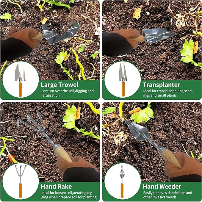 - 【Premium Stainless Steel Gardening Tools】- Crafted from high-grade stainless steel, this professional garden tool set resists rust, corrosion, and bending—even under heavy use. The premium stainless steel construction ensures years of reliable performance, making the garden tools for gardening perfect for durable gardening, landscaping, and planting.
