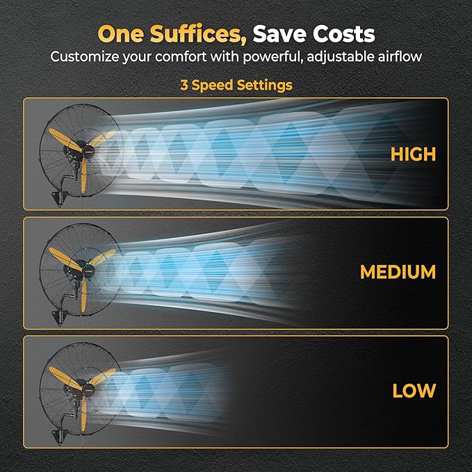 - Triple Safety & Commercial Reliability: A stable wall mount minimizes vibration, while heavy-duty safety latches, safety screw, and overheat protection ensure safety in crowded or complex environments. This oscillating fan is ideal for garage, greenhouse, gym, chicken coop, horse barn, shop, or covered outdoor spaces like gazebo, patio, pergola, and porch.