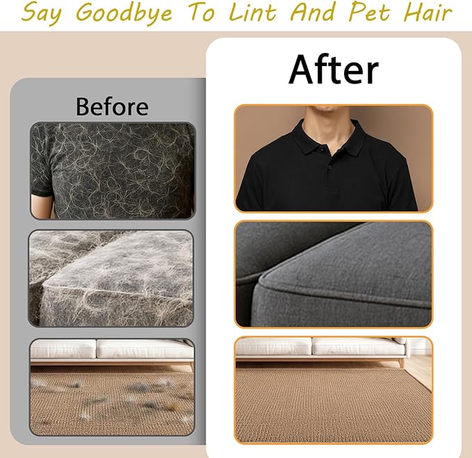 - 【Powerful Electrostatic Pet Hair Removal Tool】: Advanced static technology lifts pet hair, lint, and dust with simple swipes. Works on all fabric surfaces like sofas, carpets, clothes, and car seats—no more struggling with stubborn fur.