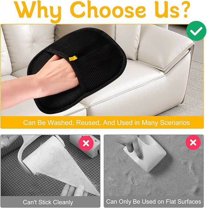 - 【Wide Coverage, Quick Results】 Designed to handle large surfaces with ease, these dog hair remover let you clean sofas, carpets, rugs, and more in record time. No more tedious rolling or spot-cleaning – just glide your hands and watch the magic happen!