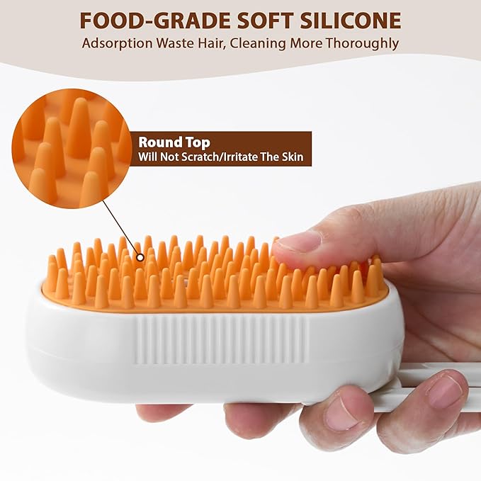 - 【Unique Steam Concept】The pet steam brush features a built-in misting system that gently sprays water to eliminate static and reduce flying fur, keeping your home cleaner. Equipped with water tank, you can add water or a water-soluble care solution, significantly reducing the need for baths. This is a real lifesaver for cats who hate water!