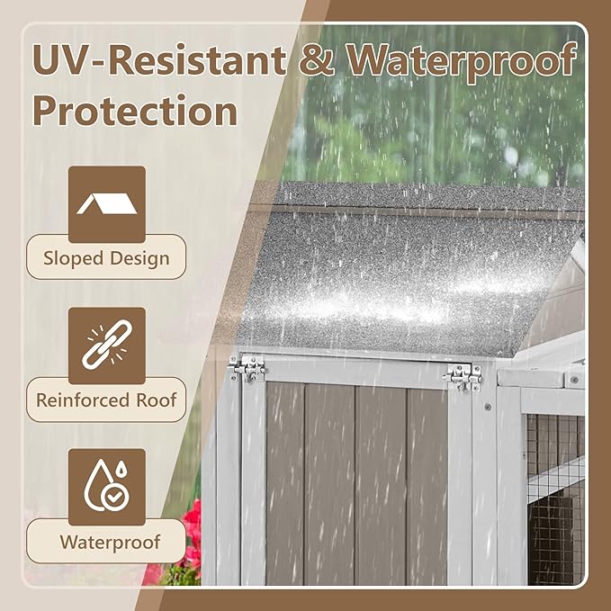 - Built Tough for Any Weather-Crafted from solid wood, this hutch holds up rain or shine. Sloped waterproof roof provides shade for your pet.